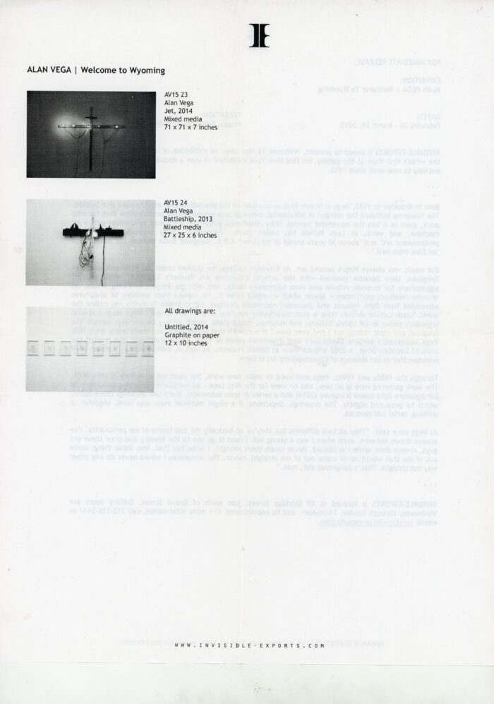 Alan Vega, Welcome to Wyoming, Invisible-Exports, Card with Press Release, 2015