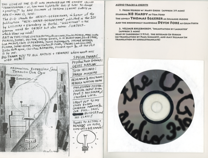 Amy Sillman, The OG Vol 3, Amy Sillman & Sikkema Jenkins Gallery, 28-Page Zine with Folded Poster & CD inserted, First Edition, 2010