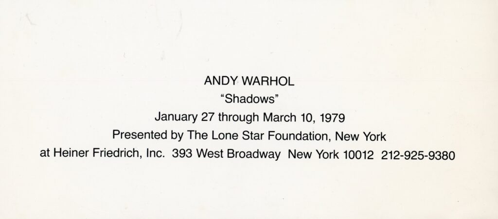 , Heiner Friedrich Gallery, Card, 1979