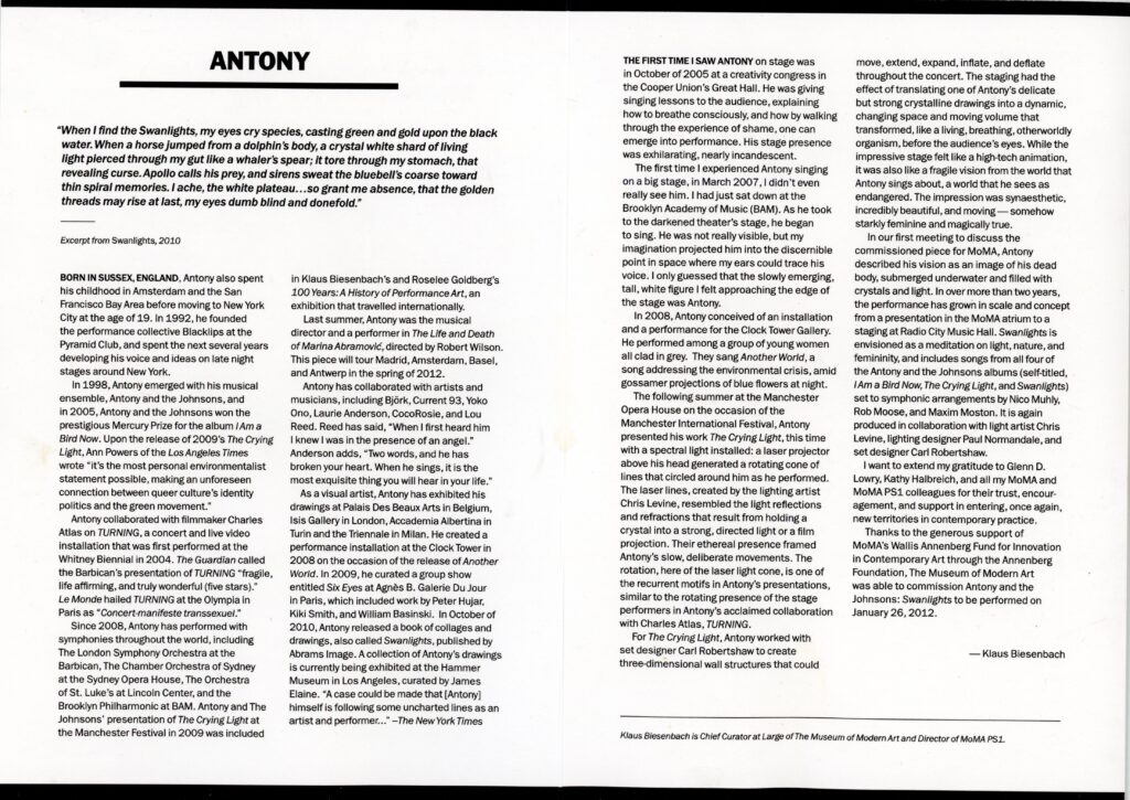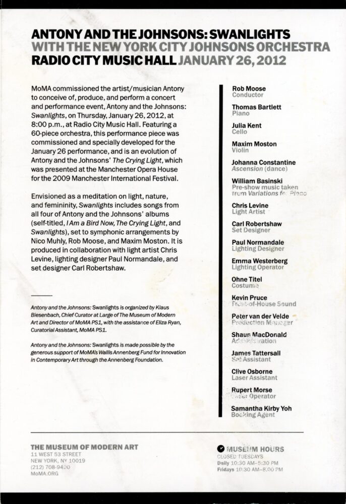 , with text by Klaus Biesenbach, MoMA & Radio City Music Hall, Folded Card, 2012