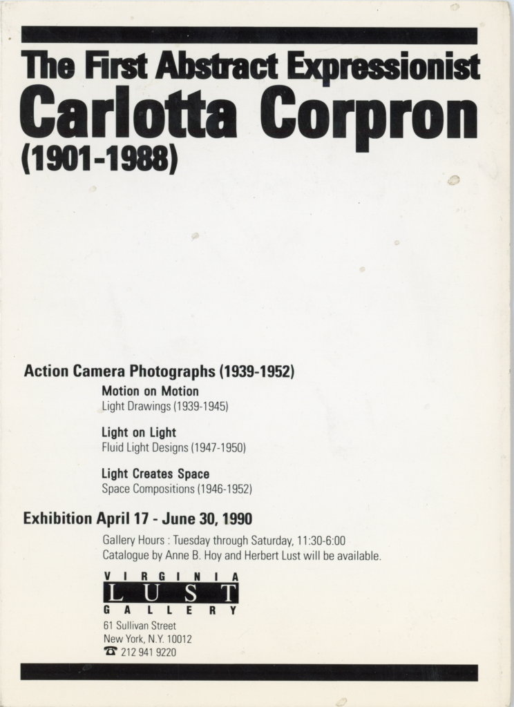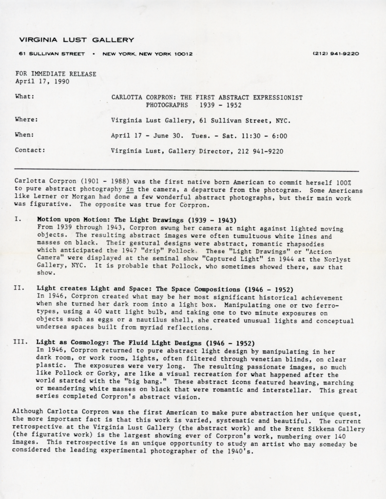 , Virginia Lust Gallery, Two-Fold Card with Press Release, 1990
