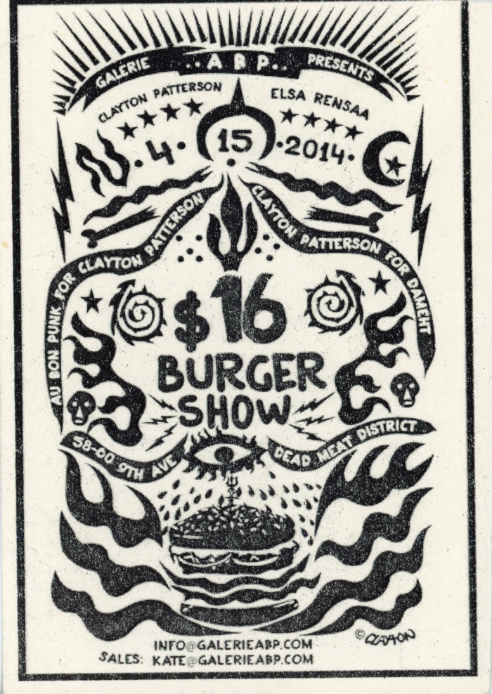 Clayton Patterson & Elsa Rensaa, $16 Burger Show, Galerie ARP, Card, 2014