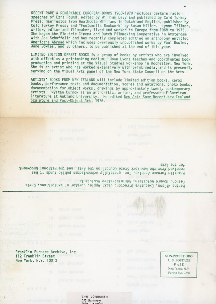, Double-Sided Flyer, Franklin Furnace, 1985