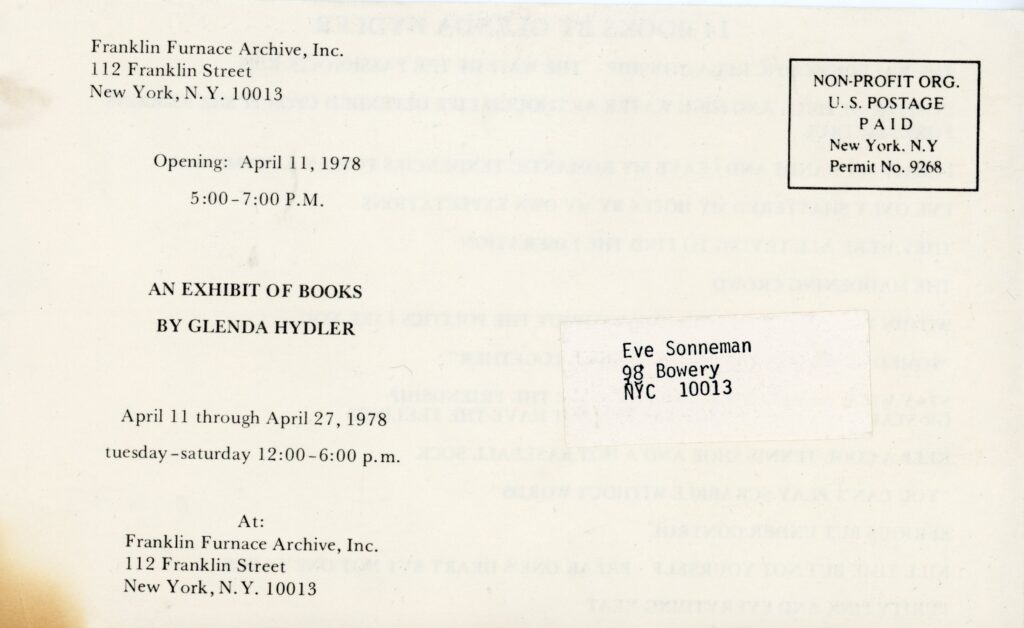 , Double-Sided Flyer, Franklin Furnace, 1985