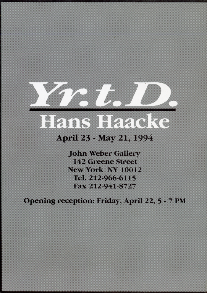 John Weber Gallery & Leo Koenig Project Exchange Exhibition, with Sol LeWitt, Hans Haacke, Alighiero Boetti, and others, Folded Card, 1999