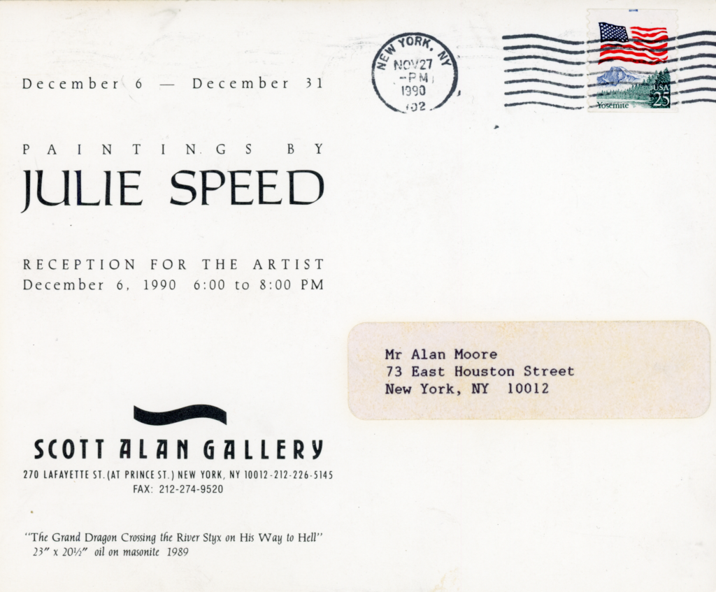 Julie Speed, The Grand Dragon Crossing the River Styx on His Way to Hell, Scott Alan Gallery, Card, 1990