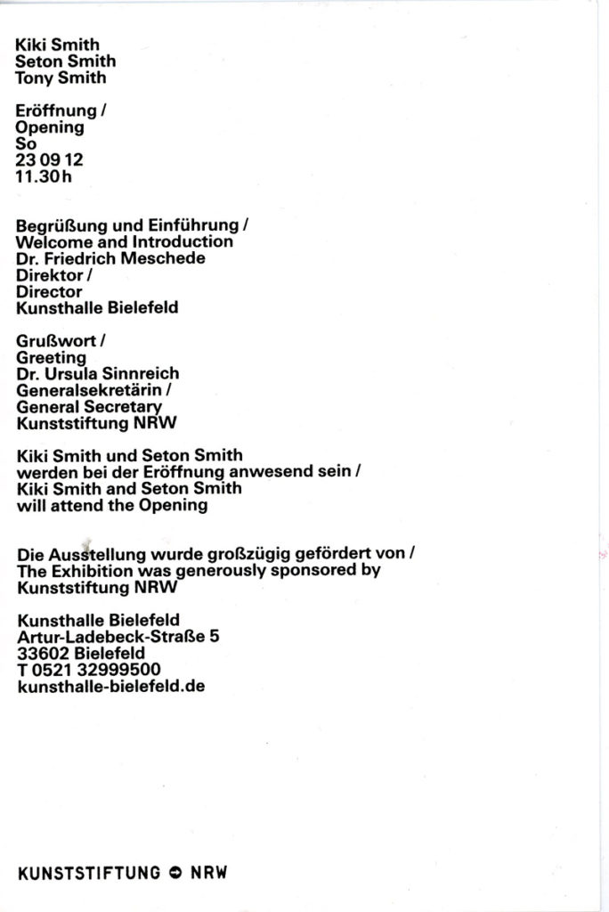 Kiki Smith, Seton Smith, Tony Smith, Card, Kunsthalle Bielefeld (Germany), 2012