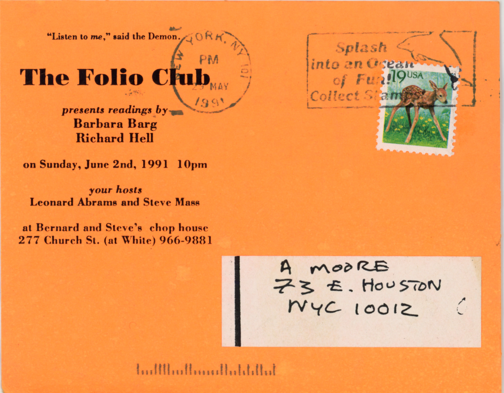 Leonard Abrams, Steve Mass, Richard Hell, The Folio Club, Card, 1991