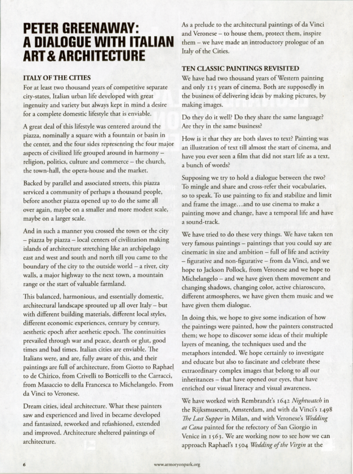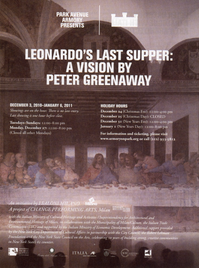 Leonardo’s Last Supper: A Vision by Peter Greenaway, Park Avenue Armory, 15-Page Program with 3-Page Essay by Peter Greenaway, 2010