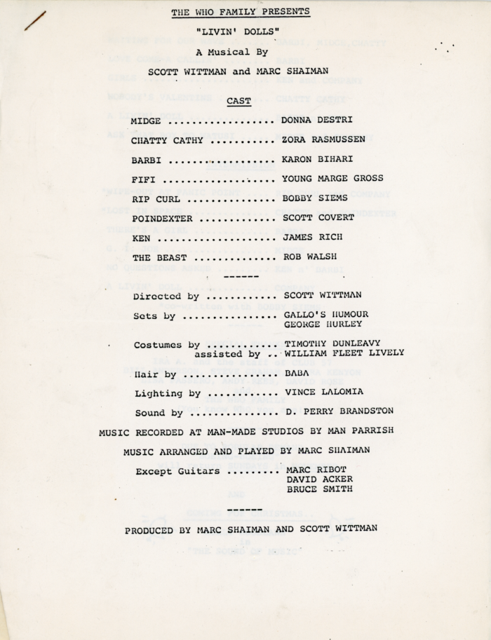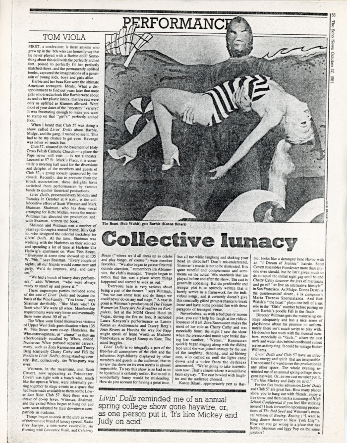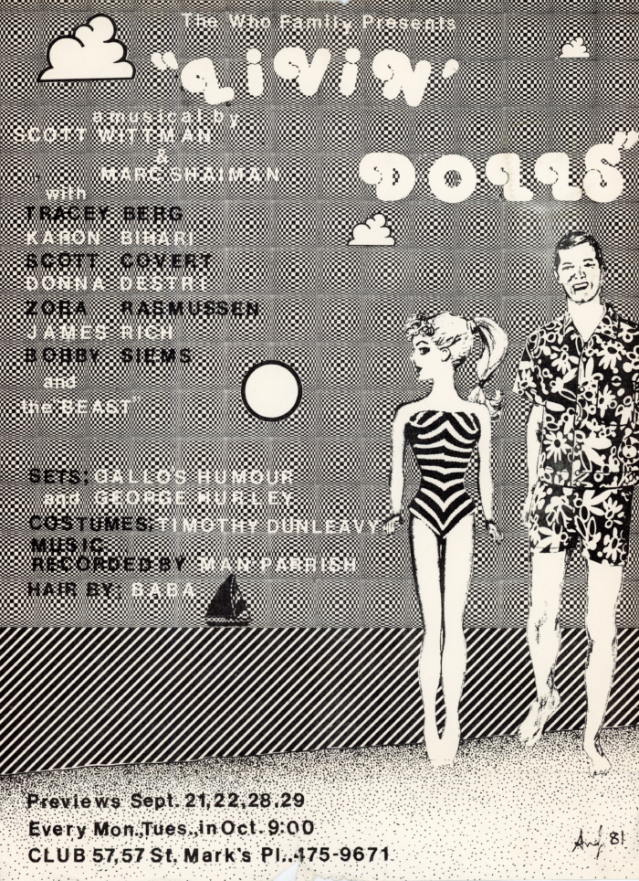 Livin’ Dolls, a Musical by Scott Wittman and Marc Shaiman, Club 57, Flyer with Newspaper Article and Program, 1981