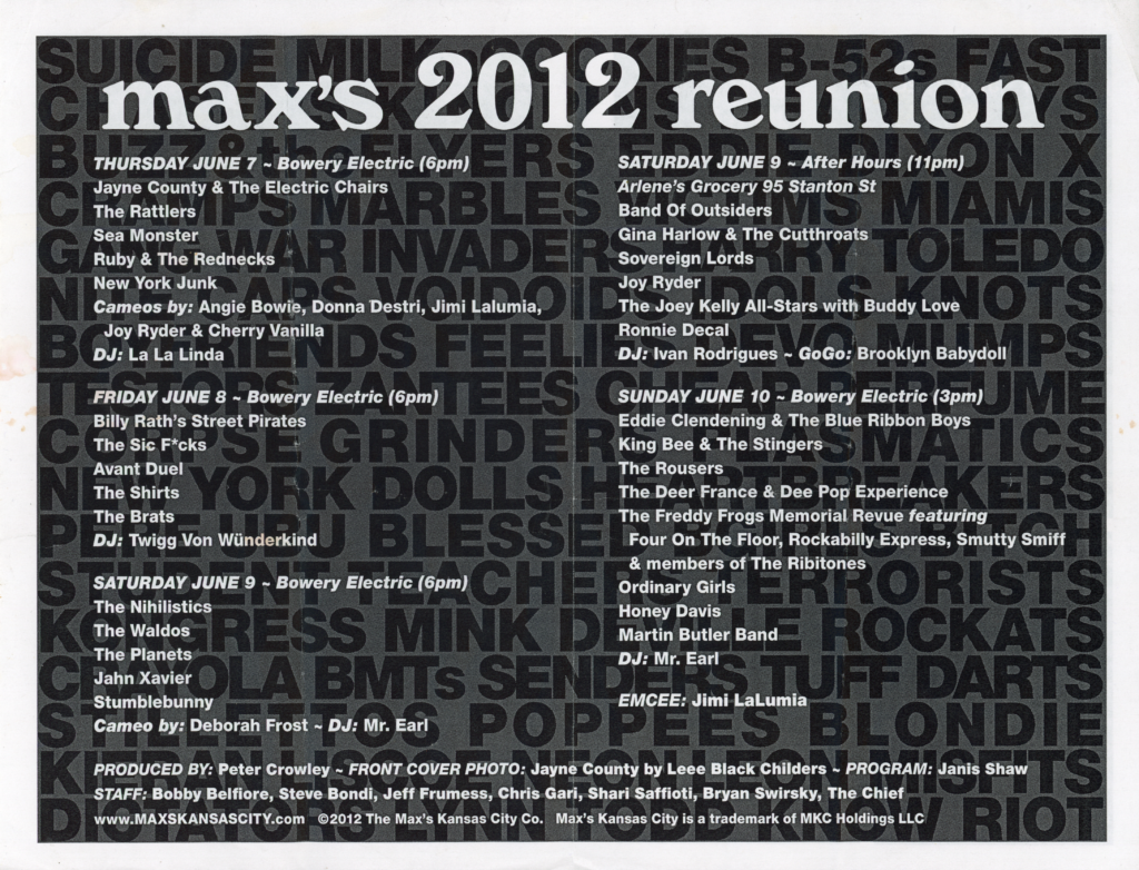 Max’s Kansas City 2012 Reunion, Cover Photo by Lee Black Childers “Jayne County,” Bowery Electric, Folded Flyer, 2012
