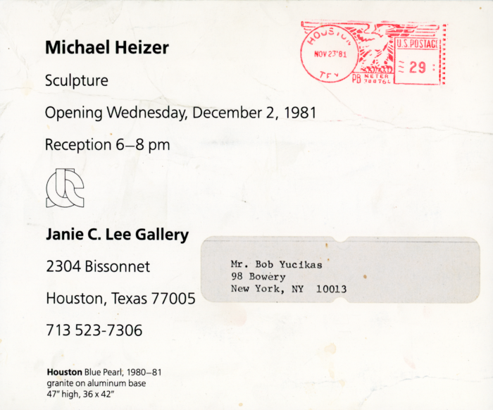 , Janie C. Lee Gallery (Texas), Card, 1981