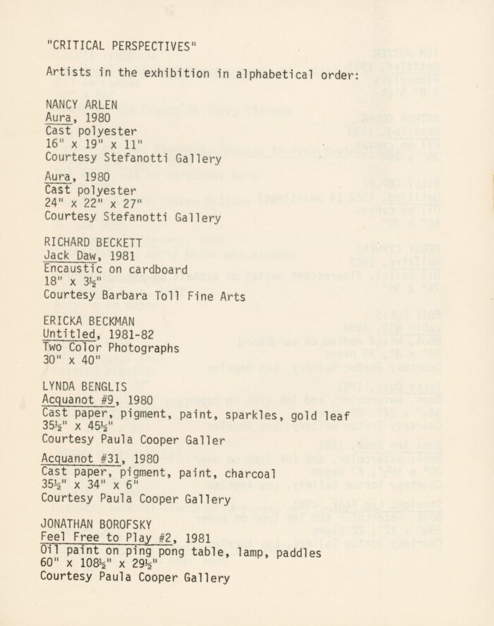 , Group Show with Edit DeAk, Marcia Tucker, Lynda Benglis, and others, 43-Page Catalogue, 1982