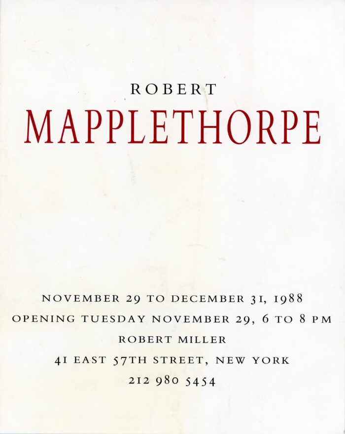 Robert Mapplethorpe, Robert Miller Gallery, card, 1988.