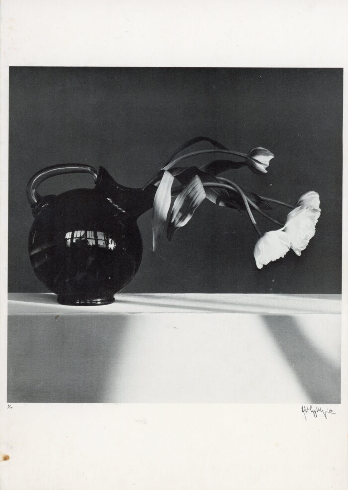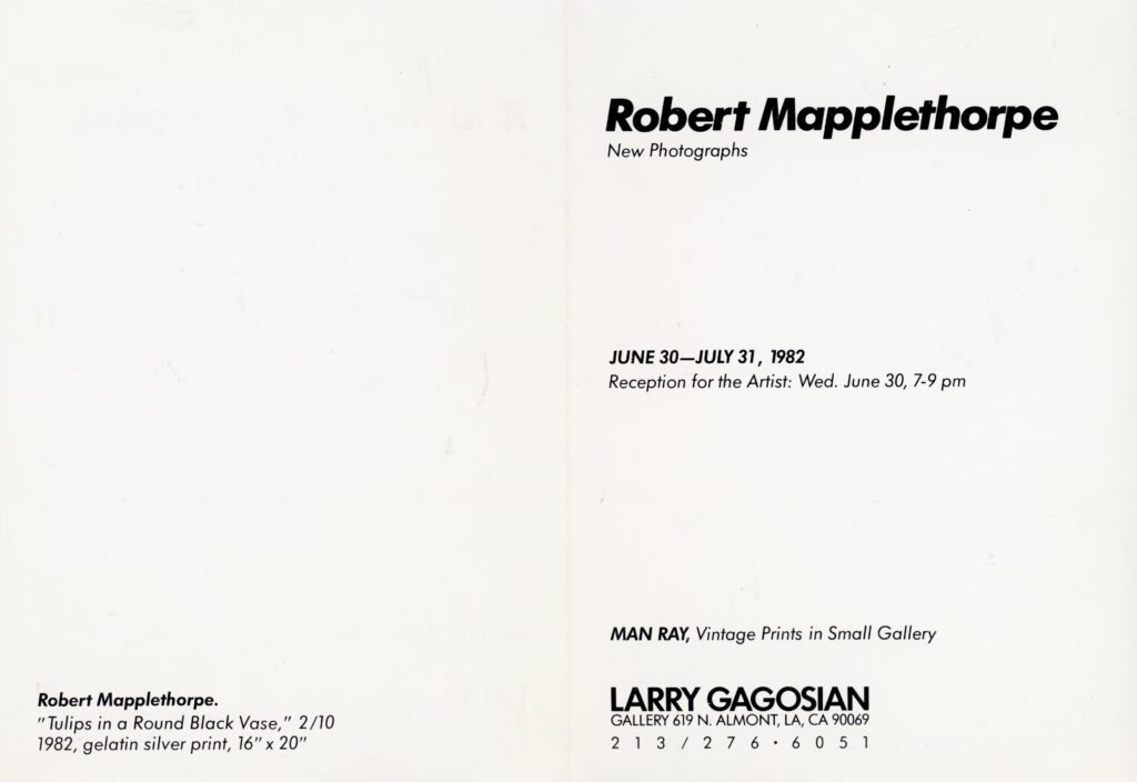 Robert Mapplethorpe, Tulips in a Round Black Vase, Larry Gagosian, folded card, 1982.