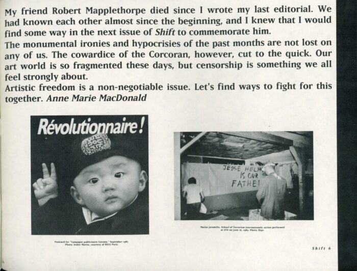 Shift #6, Includes 10-Page Insert Memorial Booklet for Robert Mapplethorpe; Interviews with Vito Acconci and Karen Finley, 53-Page Publication, 1989