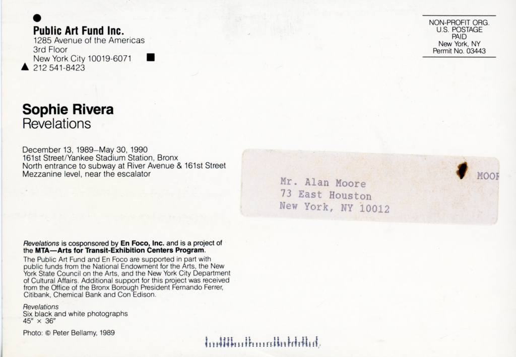 , Public Art Fund, Photo by Peter Bellamy, Card, 1989