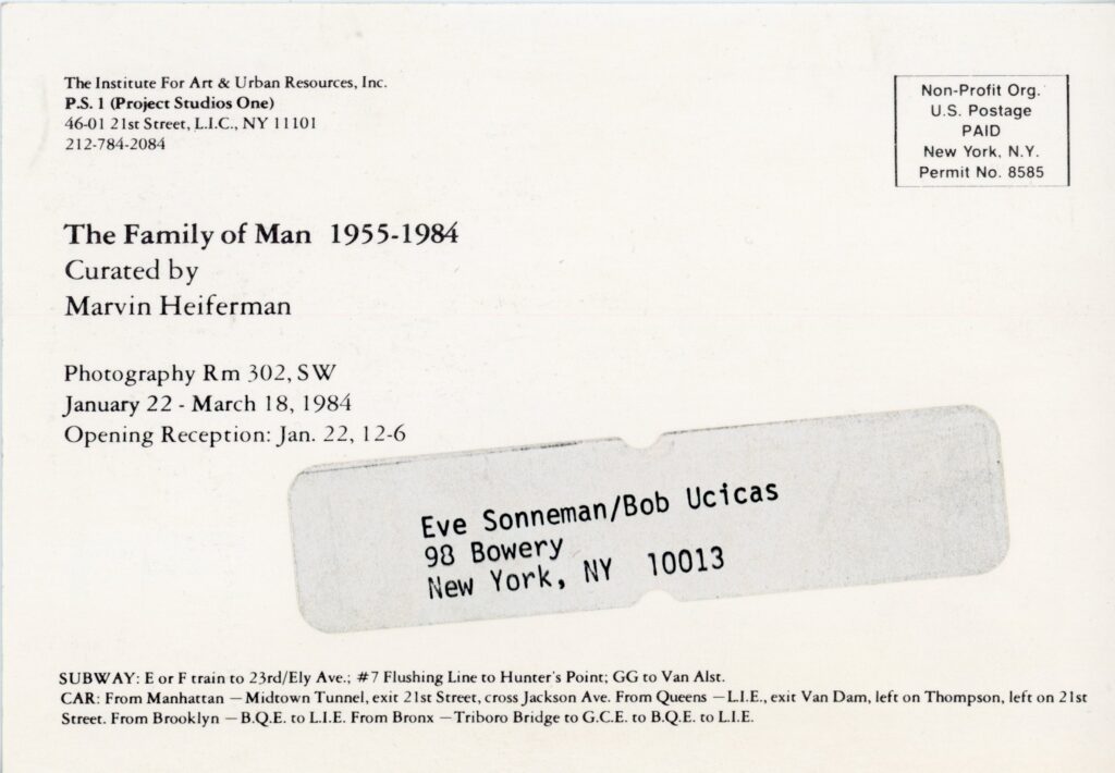 The Family of Man (1955 – 1984), Curated by Marvin Heiferman, P.S. 1 (Project Studios One), Card, 1984