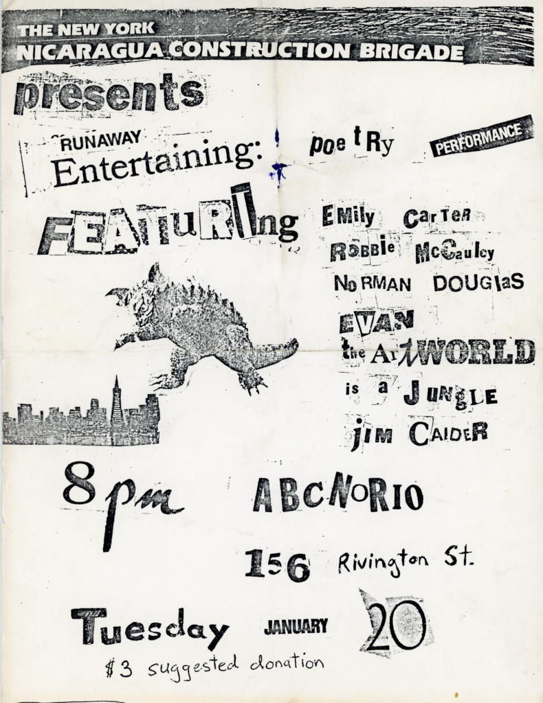The New York Nicaragua Construction Bridge Presents Poetry Performance, ABC No Rio, Xerox Flyer, 1981