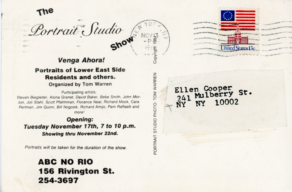 Tom Warren, The Portrait Studio Show, ABC No Rio, Card, 1981