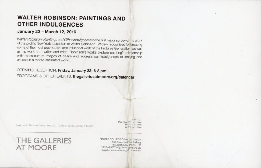 Walter Robinson, Society Nurse (2011), The Galleries at Moore, Card, 2016