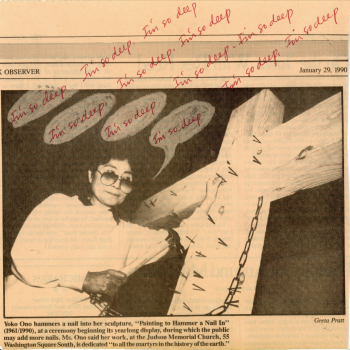 Yoko Ono, Newspaper Clipping with Derisive Comments by an Anonymous Writer, Ephemera From an Estate, 1990