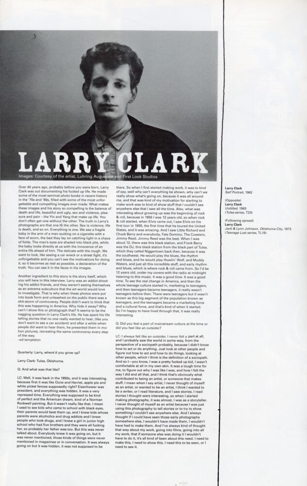 ANP Quarterly, No. 4, Larry Clark, Magazine with 10-Page Article on Clark, 2005