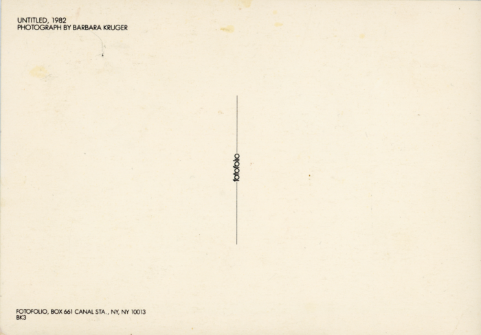 Barbara Kruger, Rhona Hoffman Gallery, Card, 1984