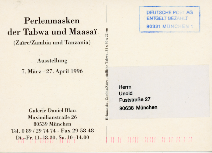 Zambia/Zaire, Daniel Blau Gallery (Germany), Card, 1996