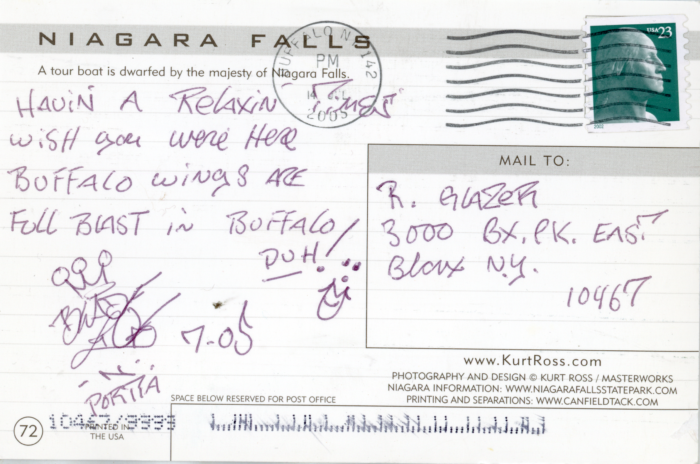 “Havin a Relaxin Time. Wish you were here. Buffalo Wings are Full Blast in Buffalo Duh!”