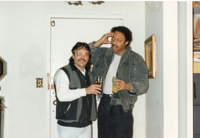Blade and Ronnie Glazer, lifelong friends from the Parkside Housing starting in the early 1970s. Gallery 98’s collection of Blade items comes from Glazer.