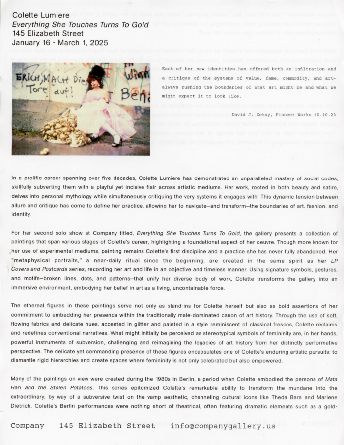 A Pirate in Venice: A Film on Colette, Directed by Frederike Schaefer, Gershwin Hotel, Card, 2012