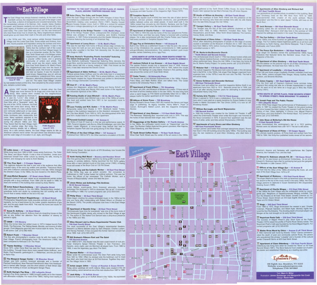East Village Map and Walking Tour, Art by James Romberger and Marguerite Van Cook, Ephemera Press, 2001