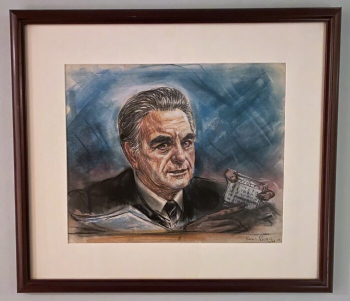 Freda Reiter – Judge John Sirica holds a calendar while scheduling future court sessions – Framed Pastel Drawing