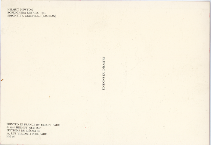 (1986), Group Exhibition with Helmut Newton and Bruce Weber, Card, Mai 36 Gallery (Zurich), 1992