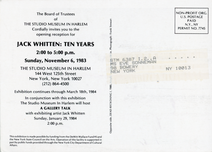 Jack Whitten, Dead Reckoning, The Studio Museum in Harlem, Card, 1983