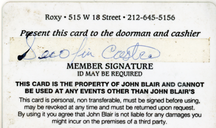 John Blair presents Saturdays at Roxy, Membership Card, 1990s