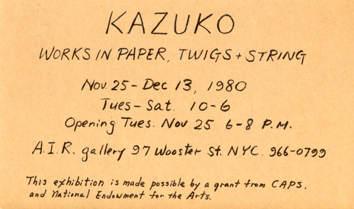 , A.I.R. Gallery, Card, 1980