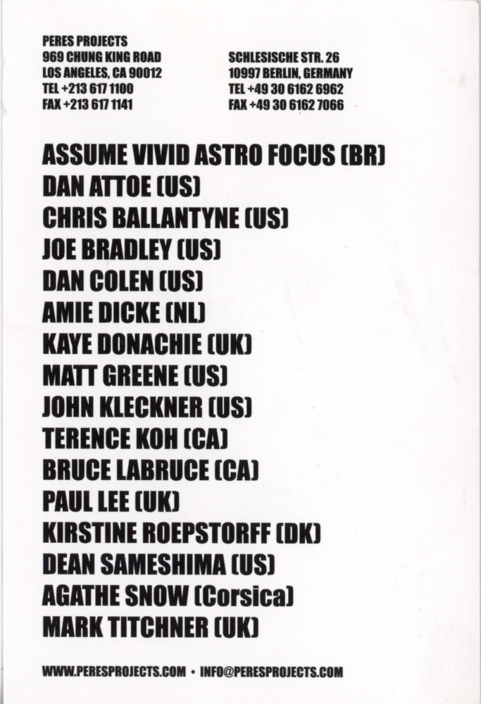 No Sex No War No Me, Group Exhibition with Dan Colen (Cover), Terence Koh, Peres Projects, Card, 2006