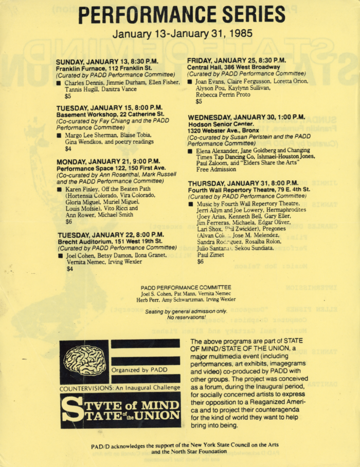 , Double-Sided Flyer, Franklin Furnace, 1985
