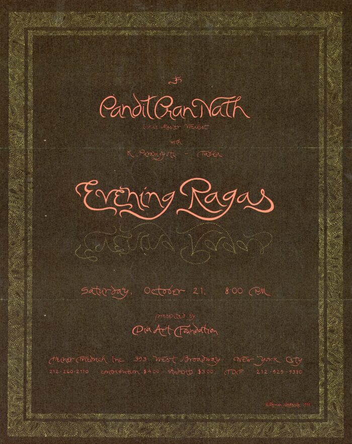 La Monte Young & Marian Zazeela with The Just Alap Raga Ensemble, Pandit Pran Nath Memorial Tribute Tour, Card, 2012