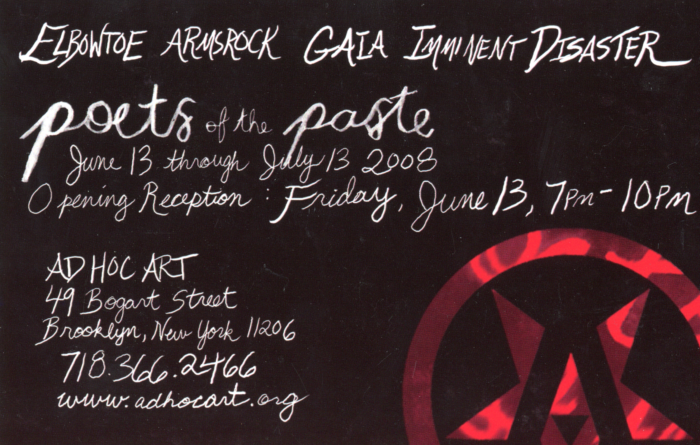 Poets of the Paste, Group Exhibition with Elbowtoe, Armsrock, Gaia, Imminent Disaster, Adhoc Gallery, Card, 2008