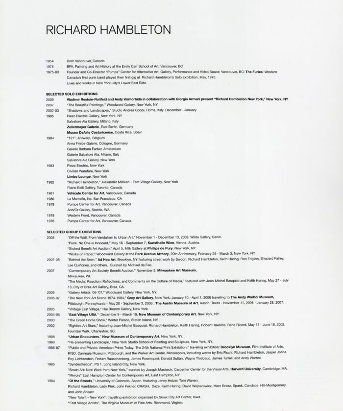 Richard Hambleton, New York, Presented by Vladimir Restoin Roitfeld & Andy Valmorbida in Collaboration with Giorgio Armani, 64-Page Catalogue, 2009