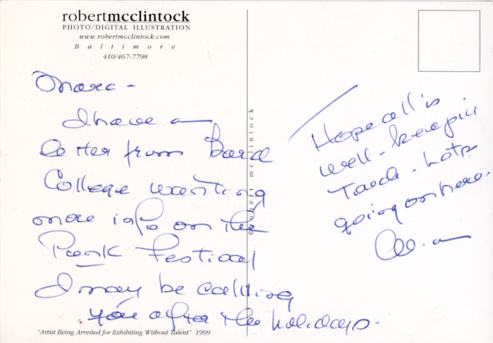, Postcard with Note from Alice Denney, 1999