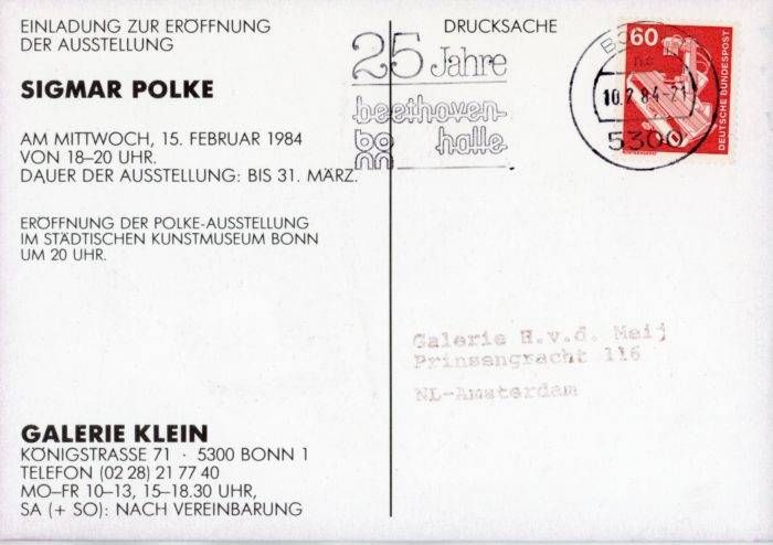 Sigmar Polke, Galerie Klein & The Kunstmuseum Bonn (Germany), Card, 1984