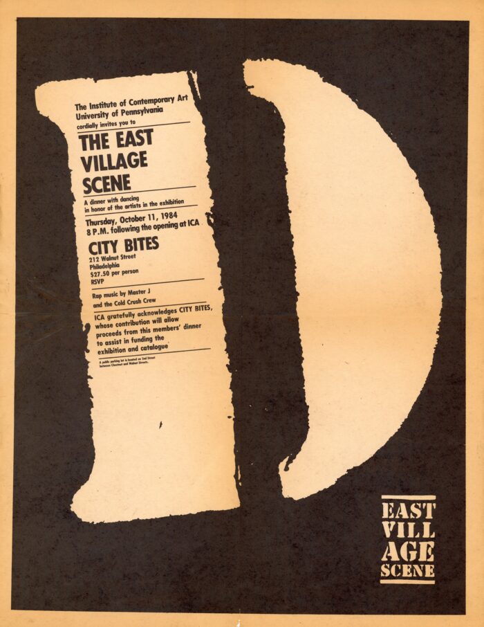 The East Village Scene, Dinner following Exhibition opening with Rap Music by Master J and Cold Crush Crew, The Institute of Contemporary Art (Philadelphia), Folded Poster on Newsprint, 1984