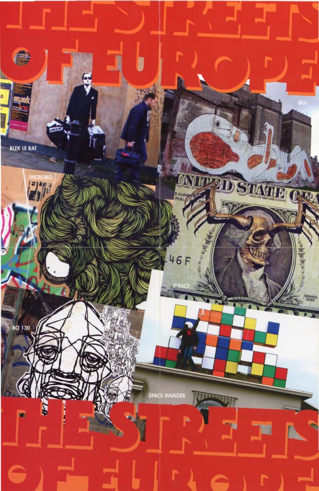 The Streets of Europe, Group Exhibition with Blek le Rat, Blu, Bo 130, D*Face, Microbo, and Space Invader, Jonathan Levine Gallery, Double-Sided Folded Poster, 2007