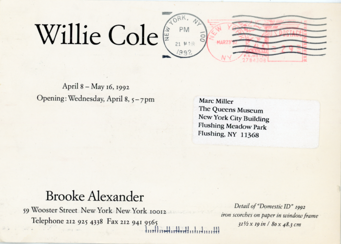 , Brooke Alexander Gallery, Card, 1992
