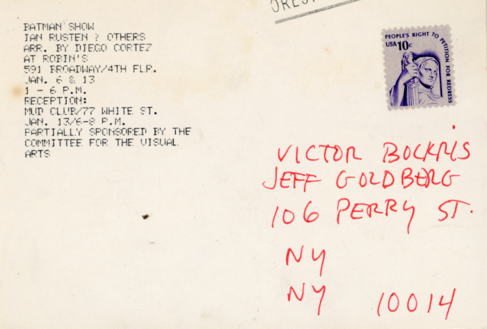 Batman Show, with Ian Rusten and Others, Arranged by Diego Cortez, at 591 Broadway, Card, 1977
