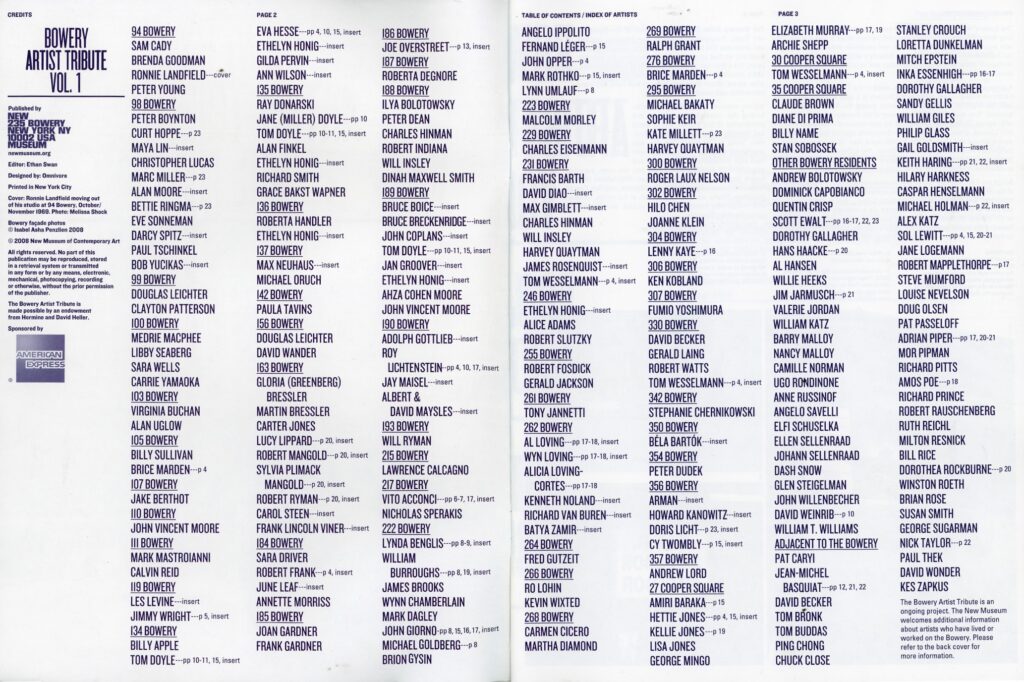 Bowery Artist Tribute Vol. 1, The New Museum, 22-Page Catalogue with Multi-Panel Bowery Map Insert, 2008